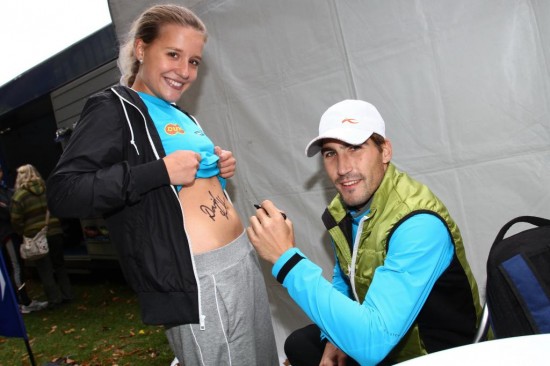 Když po závodě zjistila, že její čas byl jen o pár vteřin horší než čas Viktora Limra z předchozího běhu v Olomouci, vyzvala jej na souboj. „Pokud Viktor příští závod v Českých Budějovicích poběží, tak uvidí, zač je toho loket,“ smála se. A pak si nechala taky podepsat zlatého olympionika Davida Svobodu, a to přímo na odhalené bříško. „Sledovala jsem ho během olympiády v televizi. Moc jsem mu fandila a smála se jeho rozhovorům, protože byl vždycky vtipnej. Jsem ráda, že jsem se tu s ním mohla potkat osobně,“ říkala herečka.