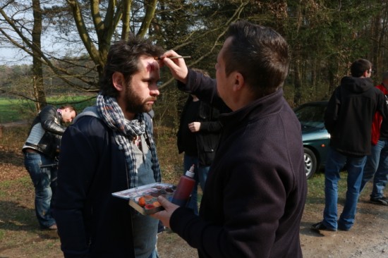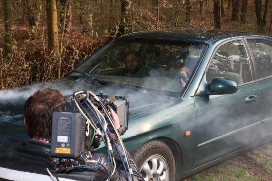 Čas Filipa Čapky a Milana Bahula přišel až ve chvíli, kdy se nabouraná auta zastavila. Maskéři herce patřičně zakrvavěli a oni si pak sedli na místa řidiče a spolujezdce. Rekvizitáři výsledný dojem ještě podpořili dýmovnicí, aby se z auta kouřilo. „Dým v autě byl dost nepříjemnej, ale jinak pro nás scéna nebyla nijak složitá, už jsem při natáčení zažil mnohem horší věci. Jsem rád, že se všechno natočilo rychle a bez problémů, protože hned po natáčení spěchám do divadla, kde mám zrovna premiéru, takže mám takový dost akční den,“ smál se Filip Čapka.