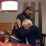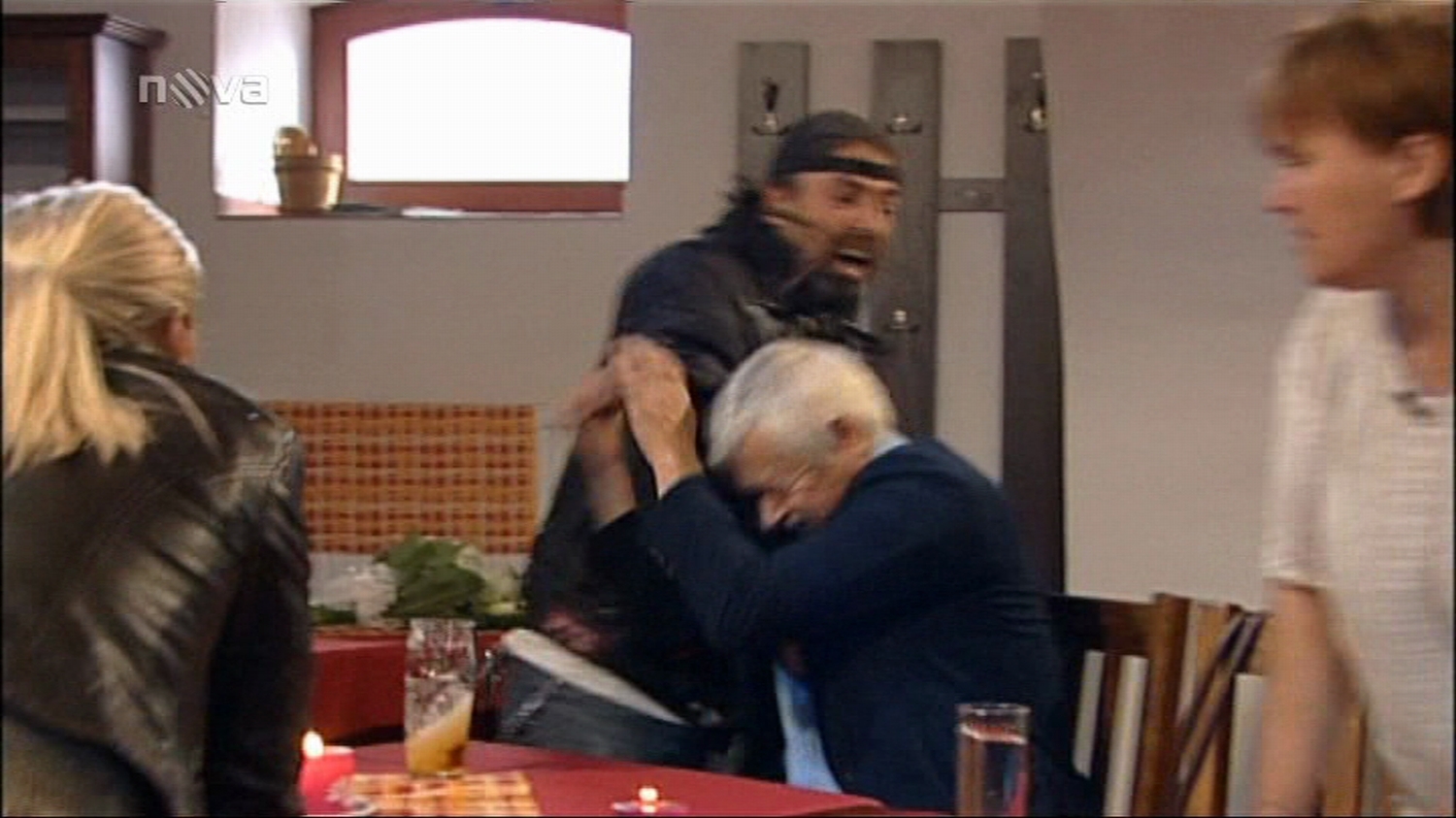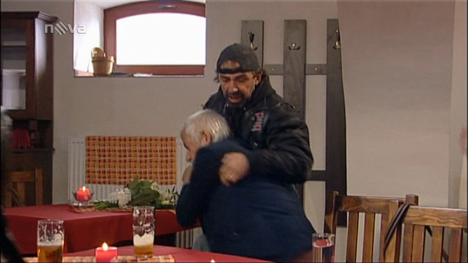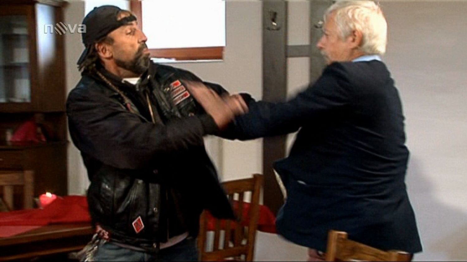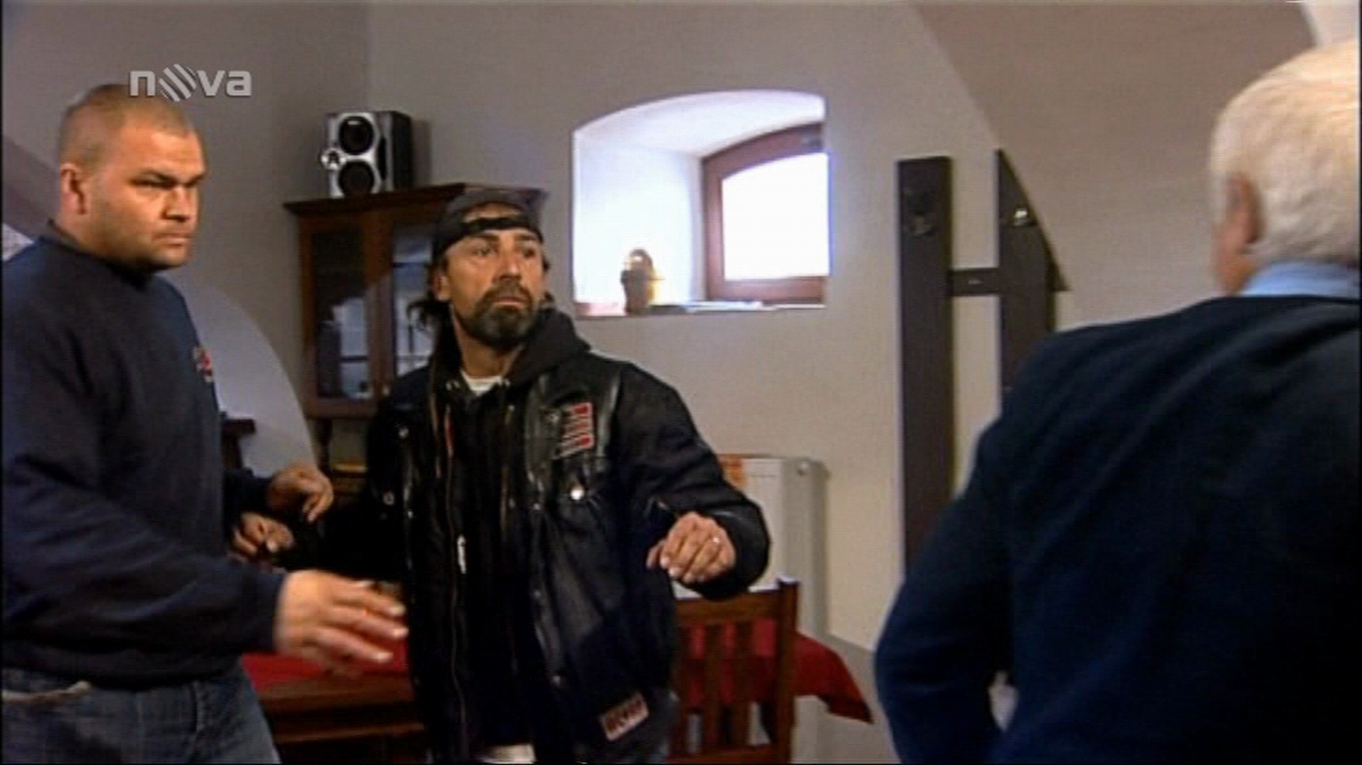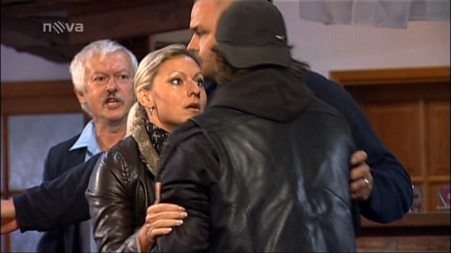 Když Dominika nakousla téma ošahávání a ochmatávání, Luboš se neudržel a vrhl se na Mirka. „Vždyť ty seš líná jako prase,“ křičel Mirek na Dominiku. Luboš vrazil Mirkovi. „Svině jedna zkurvená,“ řval Mirek. Pak už padala jedna nadávka za druhou. Začni lízt kanálama, protože až vylezeš, tak ti rozbiju držku,“ vyhrožoval Luboš Mirkovi.