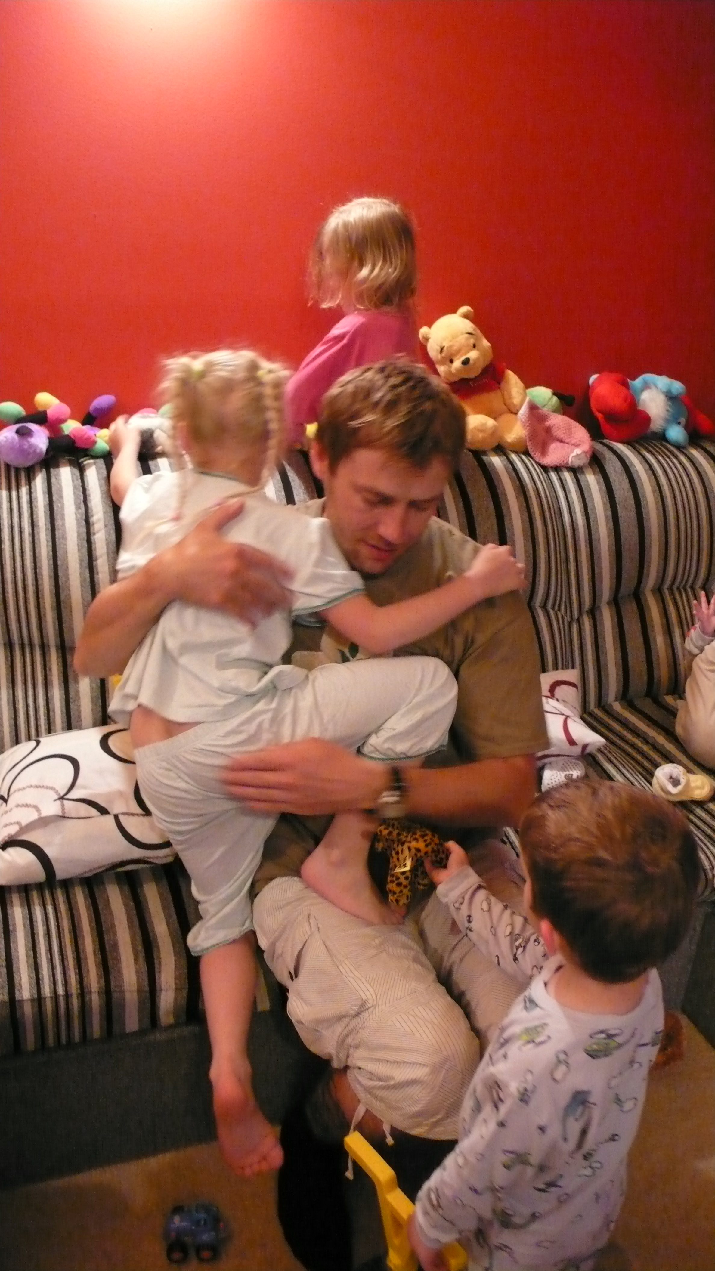 Radka (33) a Petr (35) Šustkovi jsou spolu deset let a mají pět dětí. Sedmiletou Lauru, pětiletou Agátu, tříletého Samuela a půlroční dvojčata Klaudii a Amálku. Bydlí v domku v Černíkovicích u Rychnova nad Kněžnou a i u nich je hlavou rodiny přísná a důsledná maminka. Petr pracuje jako městský policista. Jeho hlavním problémem bude zkoordinovat si všechno potřebné kolem dětí. Neví, jestli má dřív krmit dvojčata, nebo dohlédnout na to, aby si větší děti vyčistily zuby. A co víc, zjistí, že nedokáže zapnout pračku. Při tak velkém počtu dětí, které spotřebují hodně oblečení, dost zásadní problém. Petr to všechno bere ale s humorem.