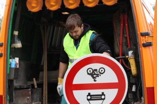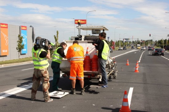 Šichta začne v šest ráno, kdy s kolegy nafasuje materiál, dopravní mapu a pokyny k osazení ulic dočasným značením. Na korbu nahází desítky třicetikilových gum a značek a vyrazí směr pražská čtvrť Prosek. Tam musí podle plánku značkami osadit blok, ve kterém probvěhne čištění. A to by ani nebyl náš šikovný moderátor, kdyby mu něco nespadlo!