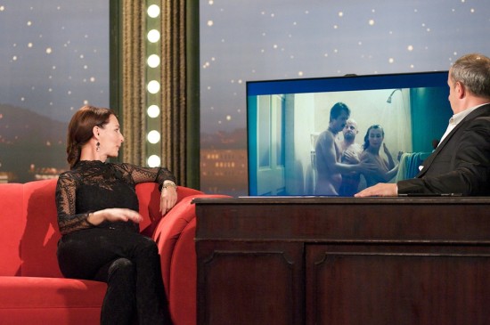 Jana Krause zajímalo, jak herečka brala natáčení nahé scény. „Já bych s tím měl problém…“ prozradil moderátor. „Já tam byla s bráchou, tam nebyl problém… Já jsem se s režisérem před natáčením bavila o tom, aby mě radši obsadil s bratrem do role toho unaveného páru, abych nehrála tu vášeň s bratrem,“ podotkla Viktorie. Moderátor se jí ptal, zda se jí lépe režírují muži než ženy. „To je spíše o sebevědomí. Aby byl herec stejně nebo podobně sebevědomý jako já. A ne výrazně méně nebo výrazně více,“ vysvětlila režisérka.