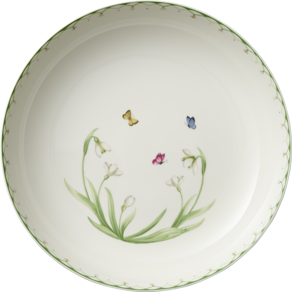 Sněženky jsou něžnými posly jara a díky tomu se staly hlavním vizuálním motivem této kolekce. Spolu s motýly rozehrávají atmosféru prvních jarních dní rozehraných hřejivými slunečními paprsky. Motýli se v kolekci nevznášejí jen nad rozkvetlými sněženkami. Otiskli se též do formy. Vystupují z tvarů dóz, váz či svícnů. V kolekci Colourful Spring najdete všechny nezbytné kousky pro naservírovaní dobré jarní snídaně či oběda, a to včetně šálku na vejce.