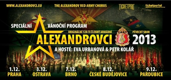 Dva nejznámějších sólisté ruského armádního souboru Alexandrovci, pánové Vadim Ananyev a Boris Dyakov, v doprovodu akordeonisty Kirilla Shtybina, navštívili minulý týden Českou Republiku, aby podpořili letošní vánoční turné svého domovského souboru Alexandrovci.